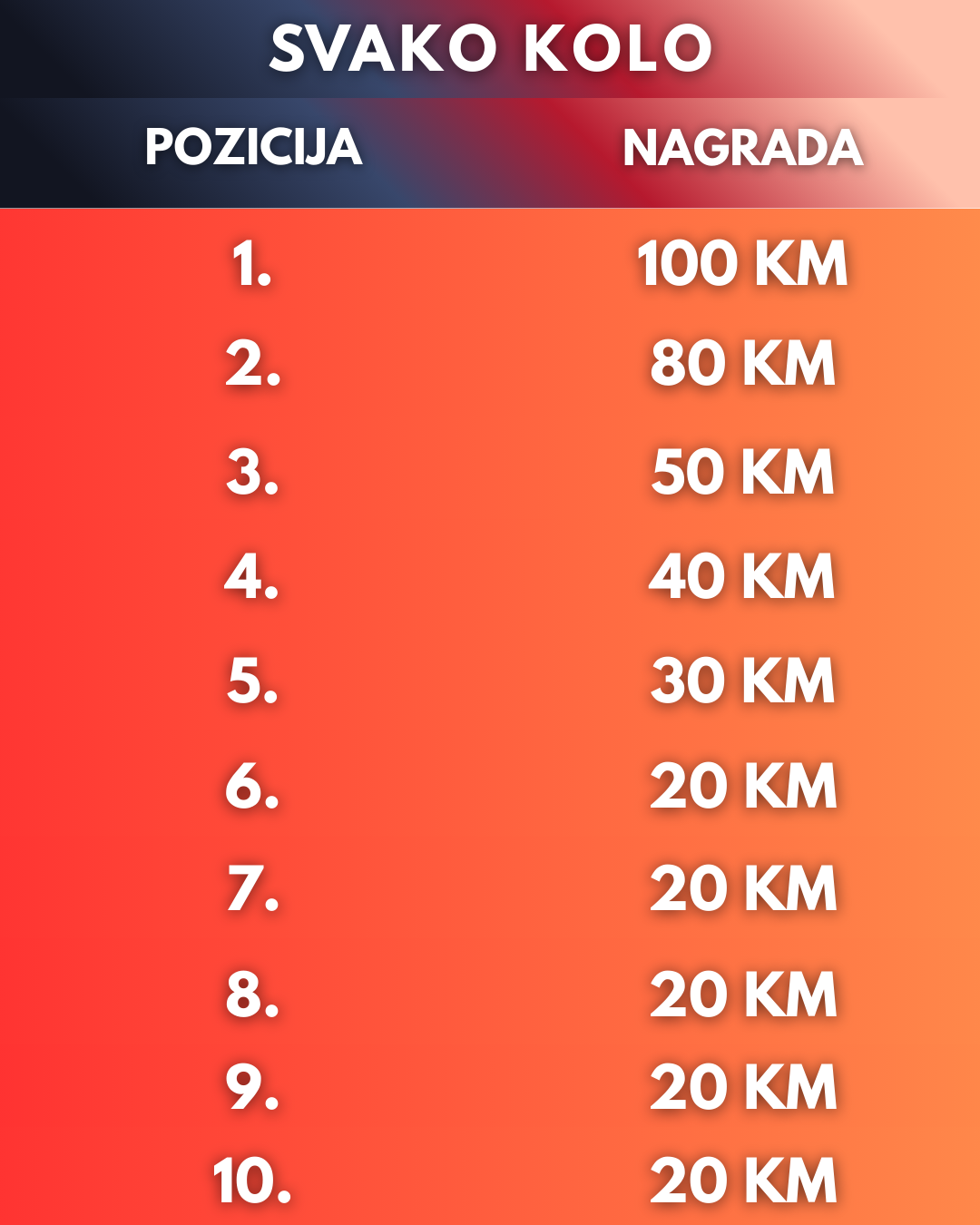 - Pridruži se besplatno i osvoji nagrade svako kolo!